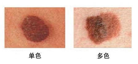 C:颜色改变(Color Variation)。普通痣多为黑、褐、棕褐等单色;恶性黑色素瘤常掺杂多种颜色,或几个月内颜色突然加深,变黑、变蓝,或开始褪色。
