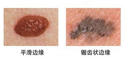 rB:边缘不规则(Border Irregularity)。普通痣边缘光滑,与周围皮肤分界清楚;恶性黑色素瘤多边缘不整,参差不齐,呈锯齿状等。
